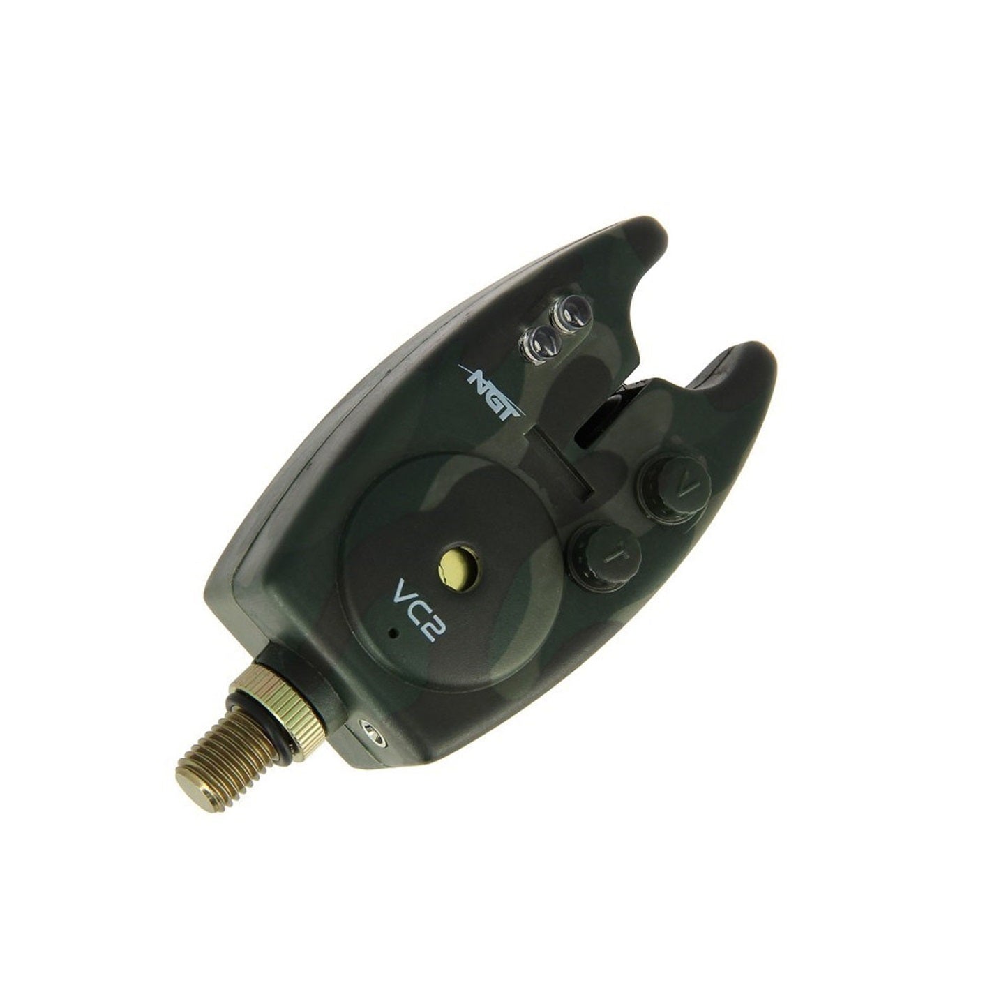 Alarma NGT modelo VC2 fabricada en color camuflaje para la modalidad de carpfishing.