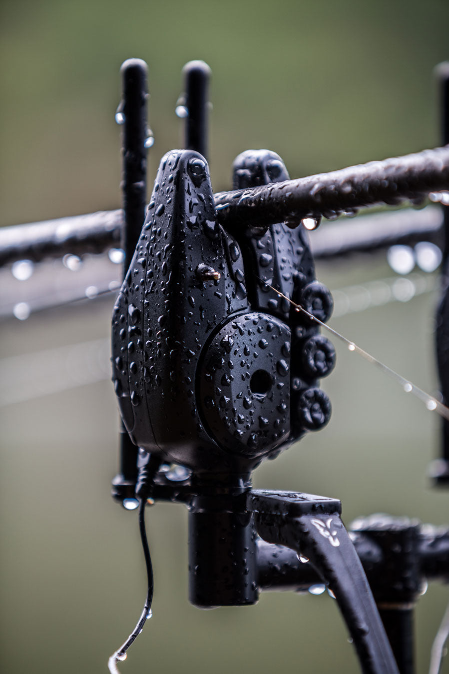 Alarma de la marca Fox modelo RX+ Micron con diseño negro, complemento perfecto para tu juego de alarmas de carpfishing.