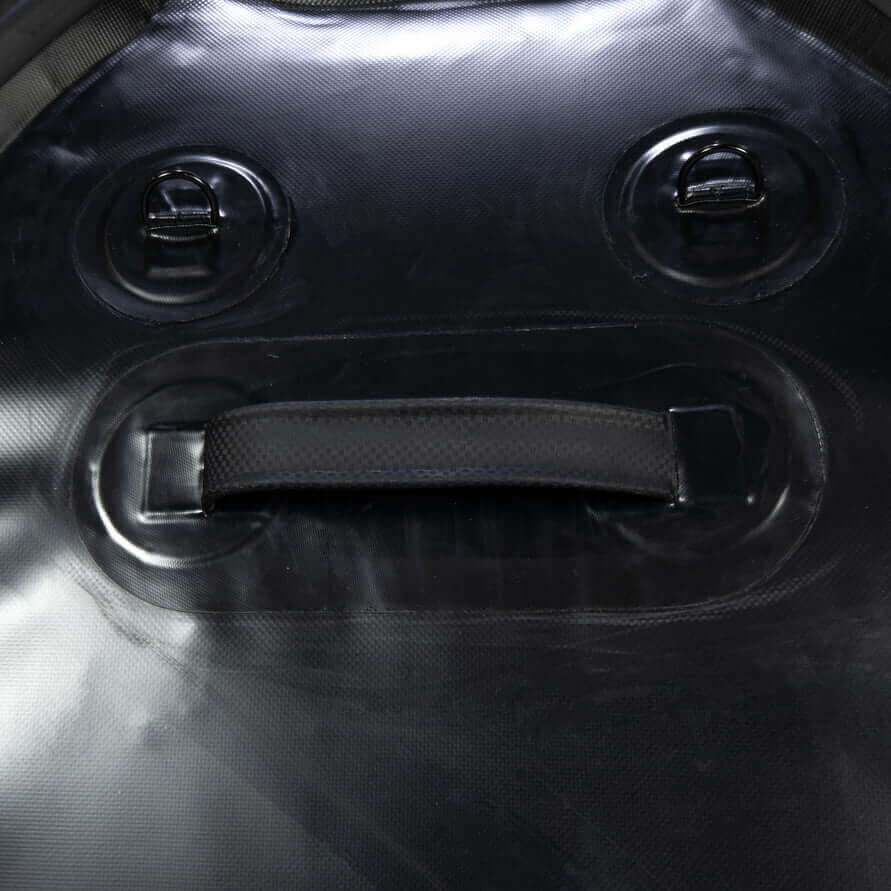 Barca compacta de la marca Raptor modelo 180 Belly Wide con suelo de aire en color negro, especial para la pesca de carpfishing.