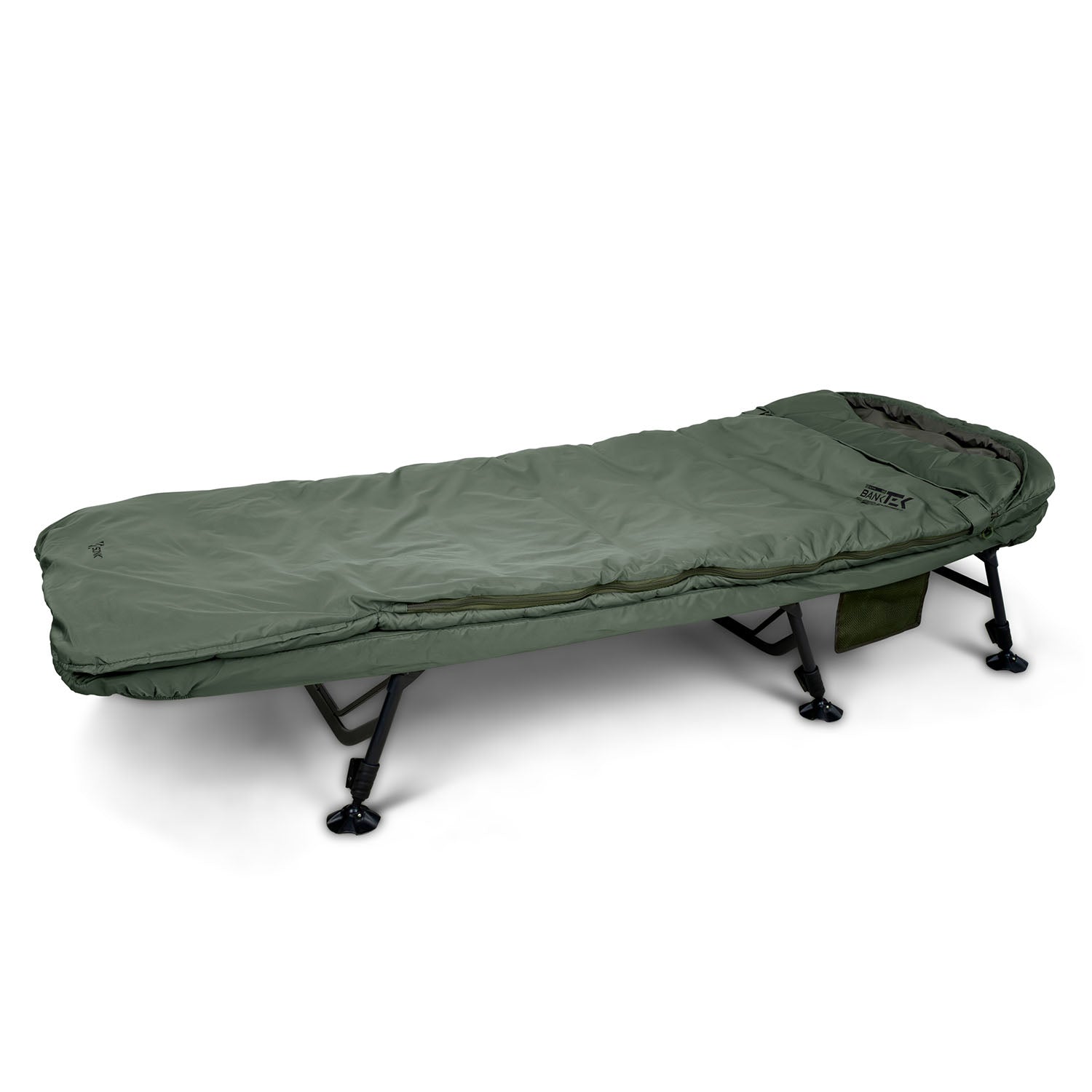 Bed Chair con saco de dormir de la marca Sonik, modelo Bank-Tek, de 5 estaciones, perfecto para una máxima comodidad en tus sesiones de carpfishing.