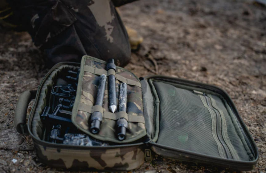 Macuto para almacenar Buzz Bar de la marca Nash en color camo tamaño grande de 48 cm, especial para la pesca de carpfishing.