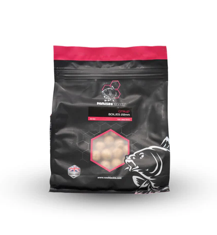 Bolsa de boilies de la marca Nash sabor Citruz en color natural de 20 milímetros, especial para la pesca de carpfishing.