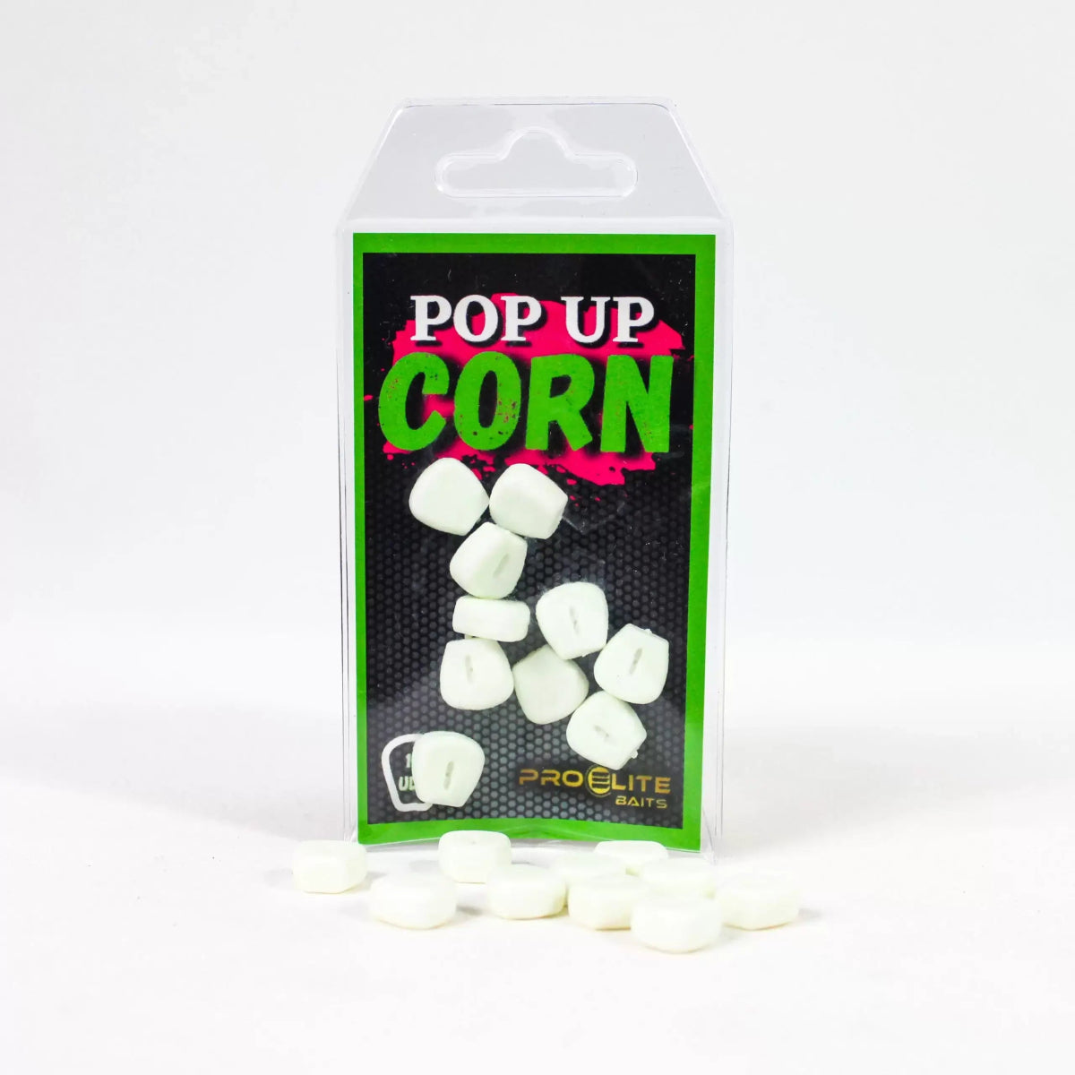 Maíz artificial pop up de la marca Pro Elite Baits en color blanco, especial para la pesca de carpfishing.