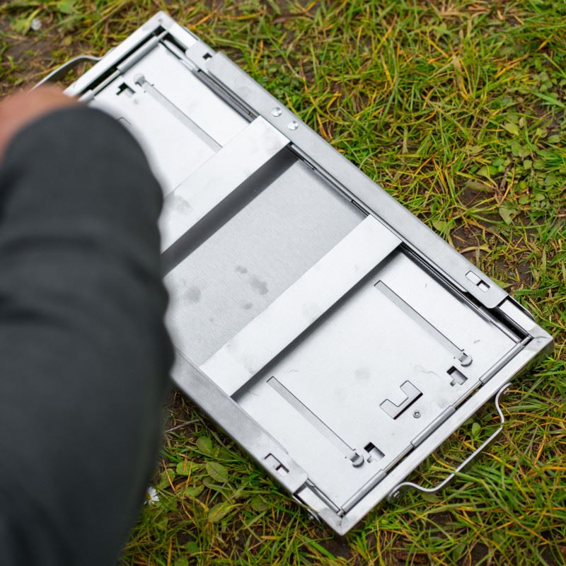 - Kit completo de juego de utensilios de acero inoxidable y una bolsa de transporte resistente para transportar la barbacoa cuando está plegada