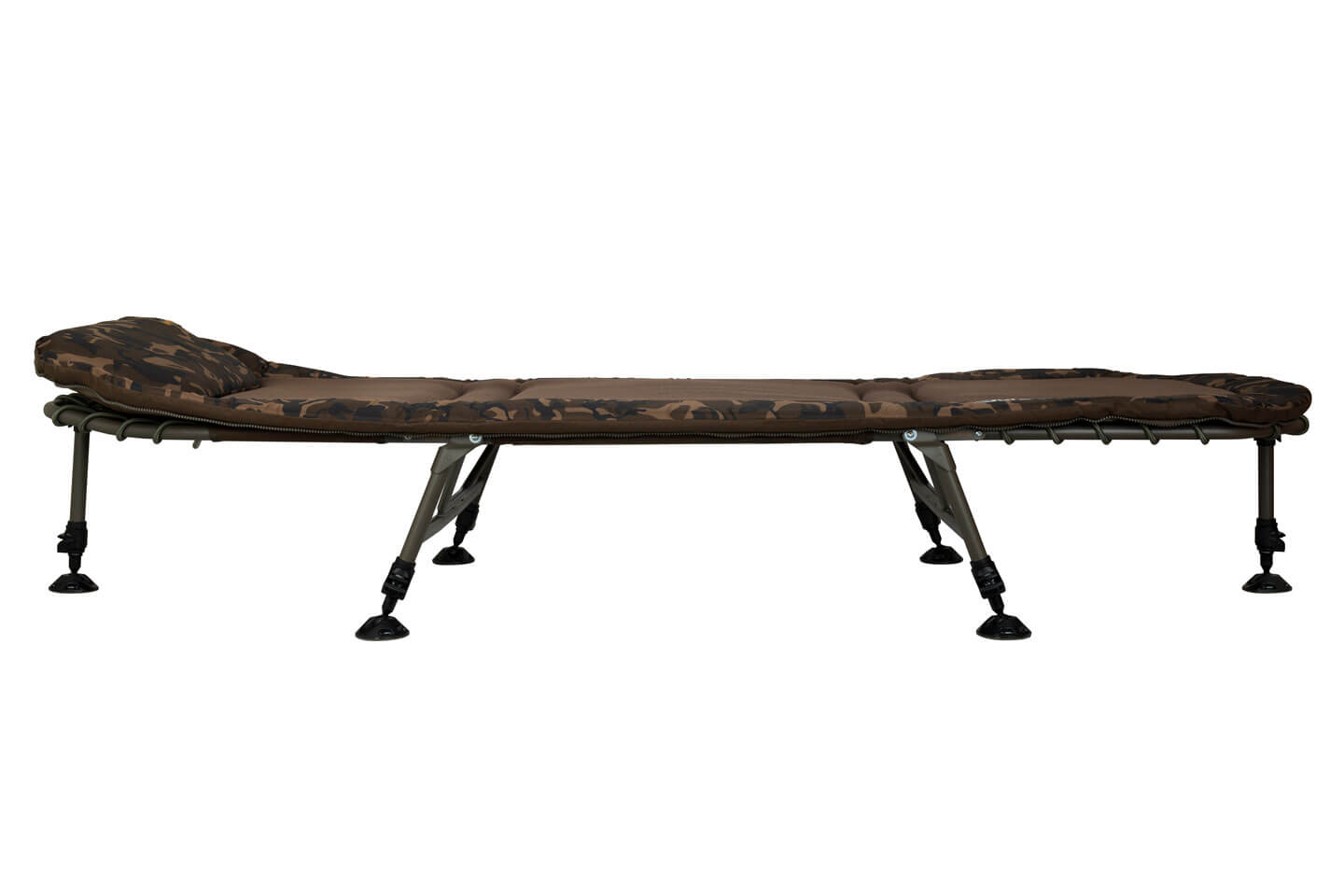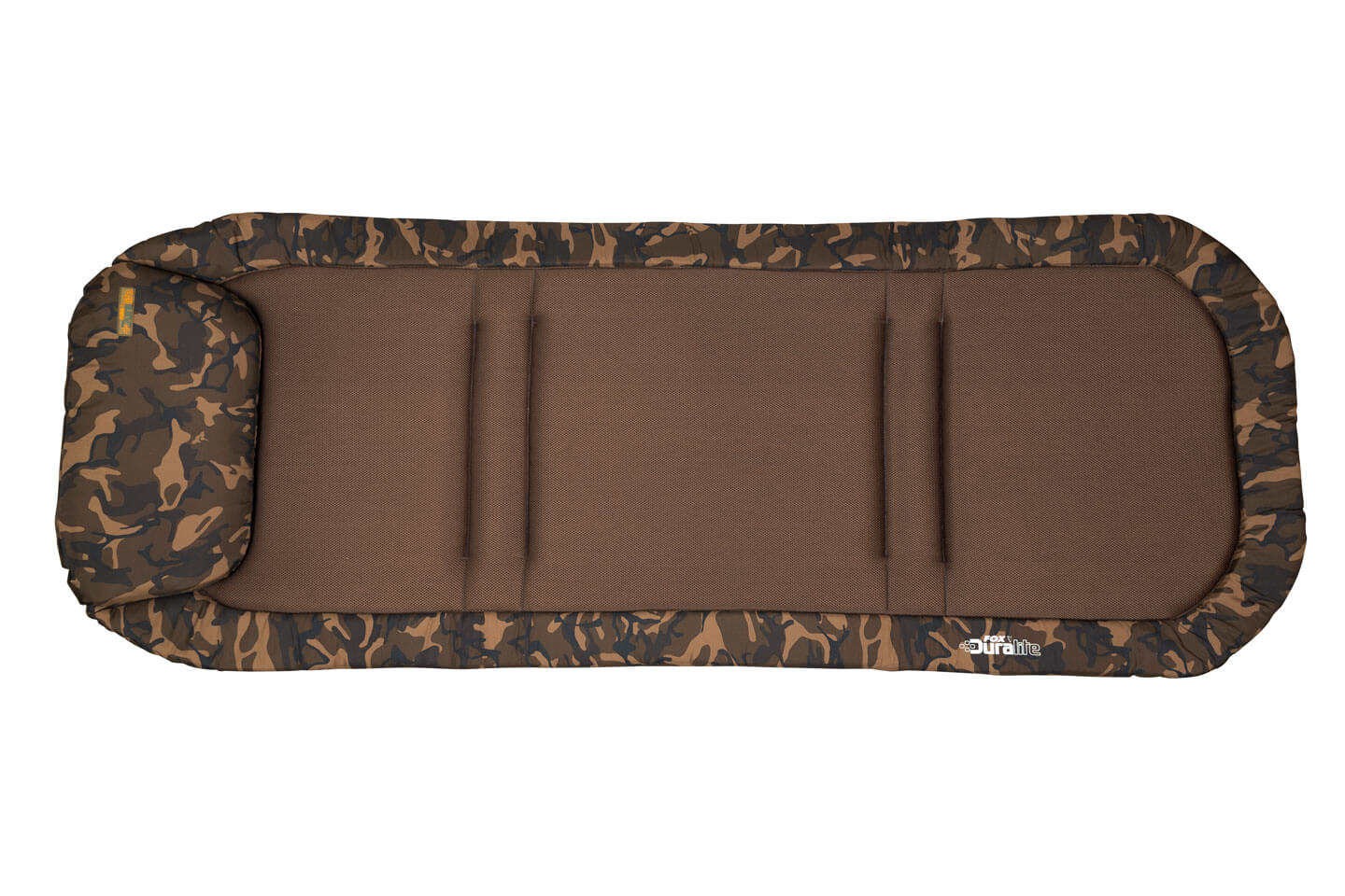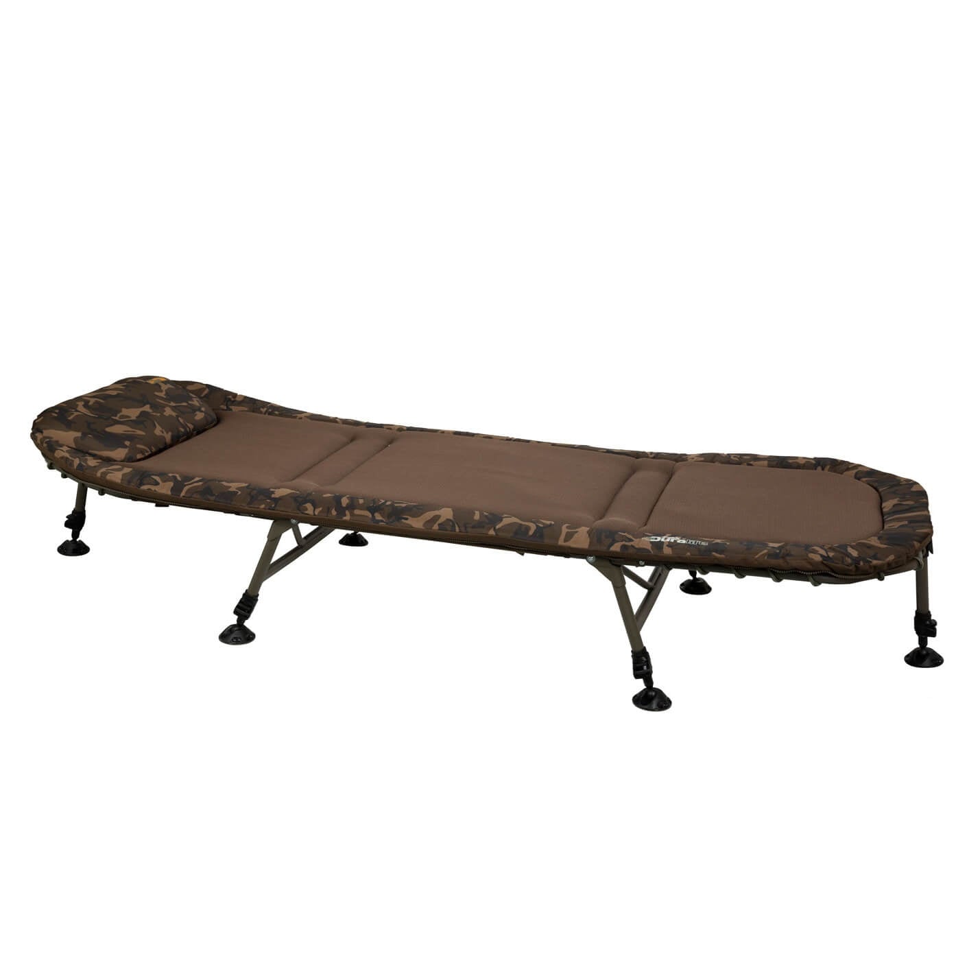 Bed chair de la marca Fox modelo Duralite en color verde camuflaje, especial para la pesca de carpfishing.