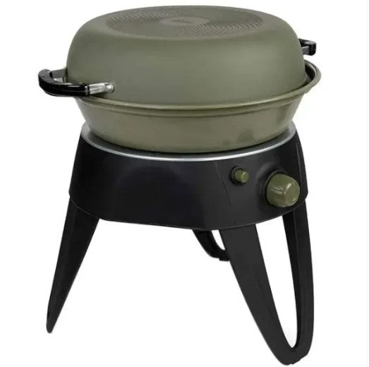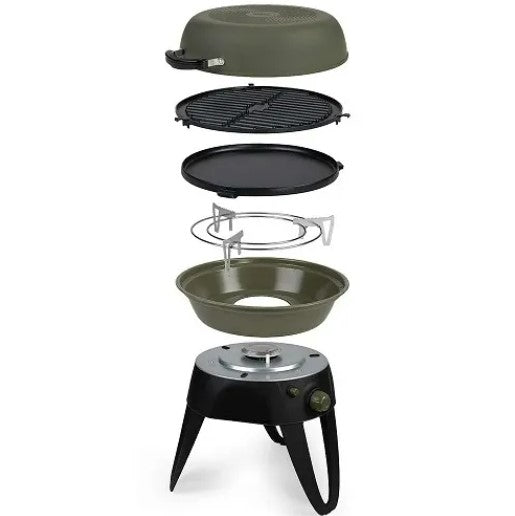 - Con diversas superficies para cocinar: plancha plana antiadherente, parrilla de barbacoa antiadherente y tapa como sartén/wok grande