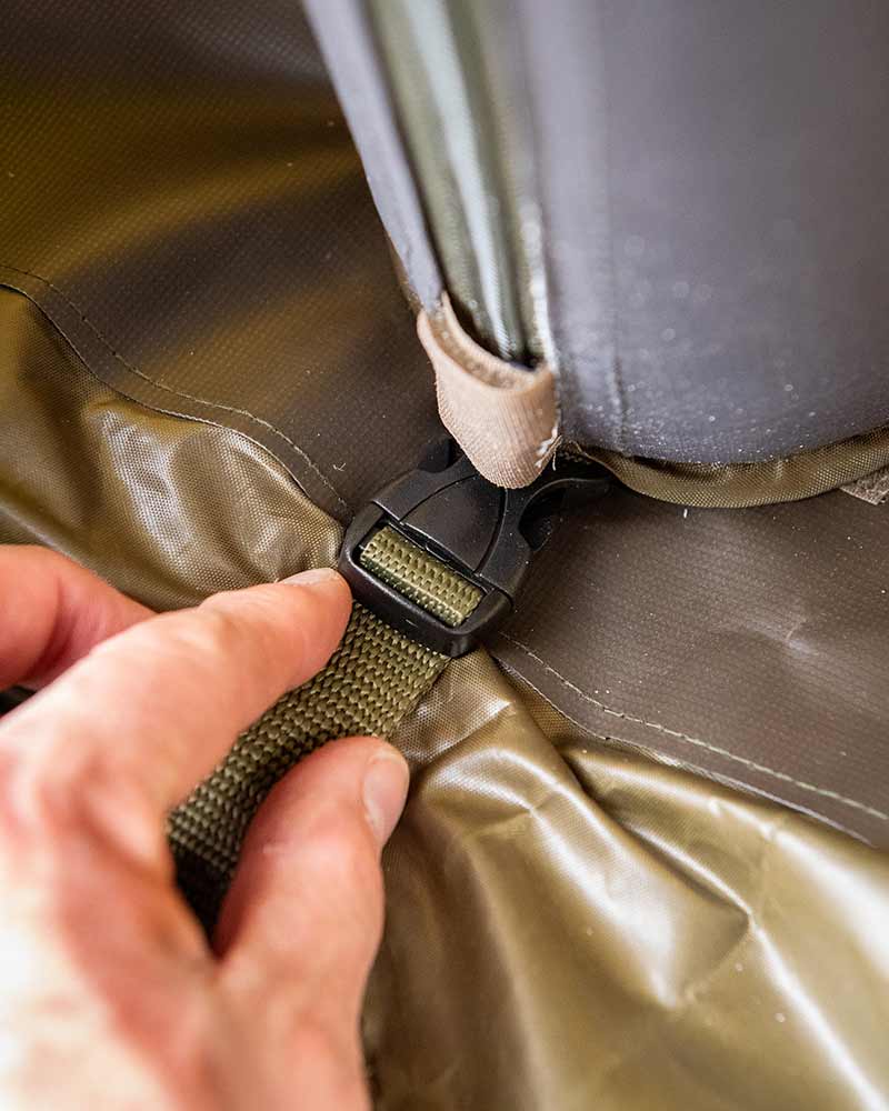 - Panel trasero con cremallera que permite entrada trasera o extensión de vivac/paraguas.