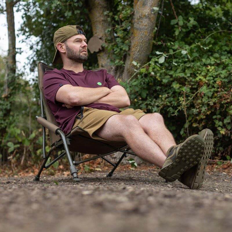 Silla de la marca Korda modelo Compac Low en color verde, especial para la pesca de carpfishing.