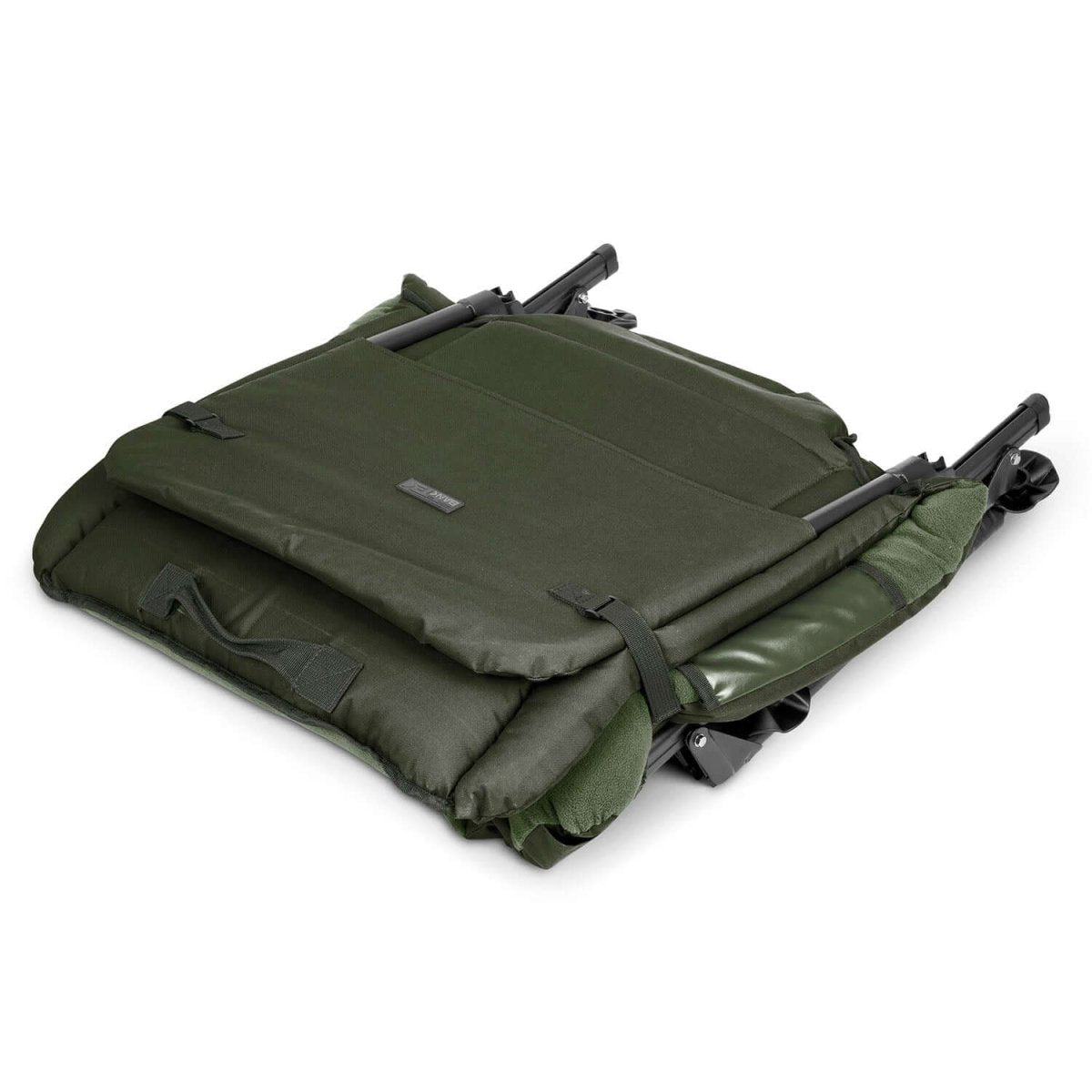 Silla de la marca Sonik, modelo Bank-Tek Comfy, en color verde, especial para la pesca de carpfishing.