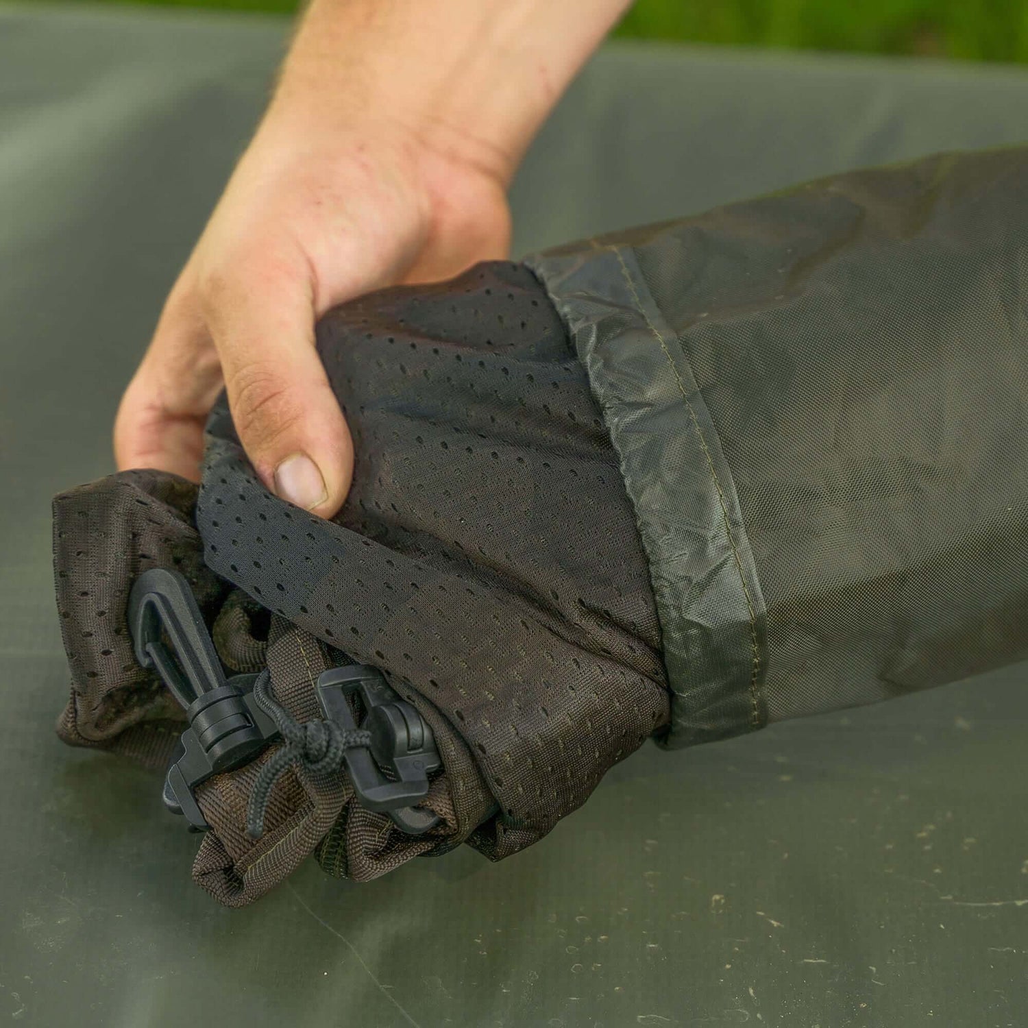 Saco de retención de la marca Avid Carp, modelo Pro-Tect, en color camo, especial para la pesca de carpfishing.