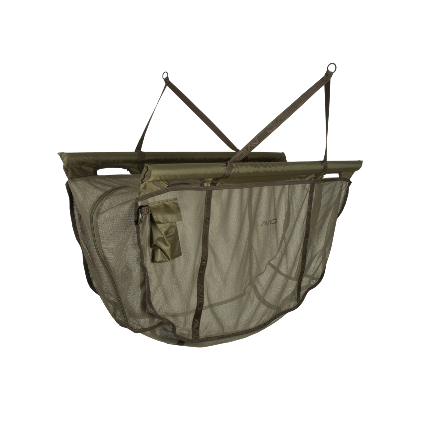 Saco de retención flotante de la marca Avid Carp, modelo Revolve, en color camo, especial para la pesca de carpfishing.