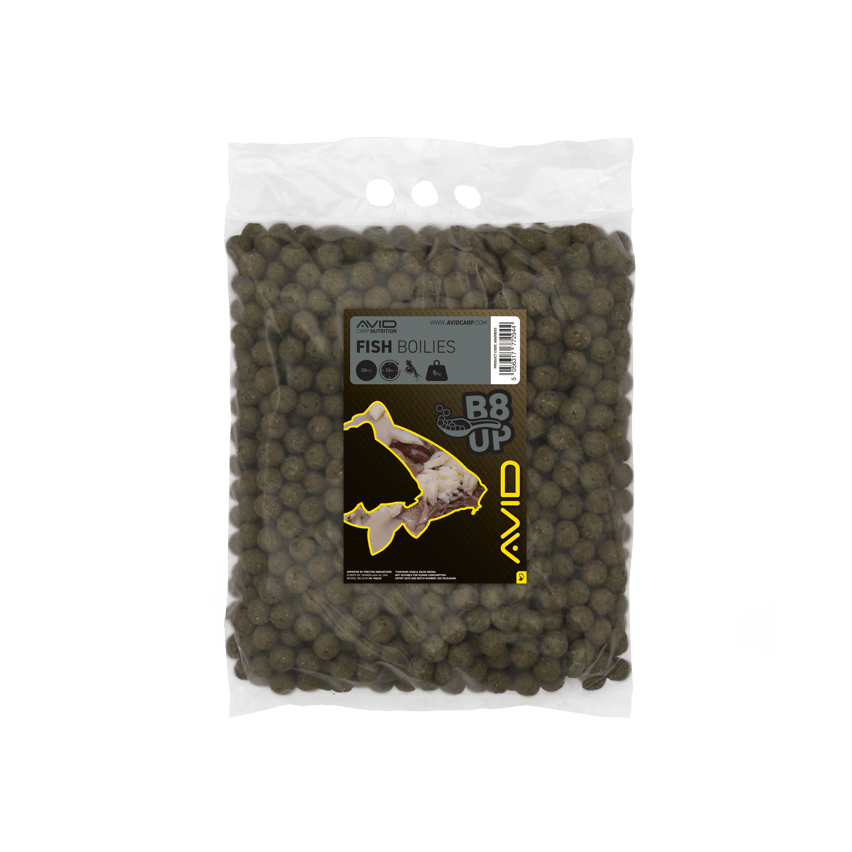 Boilies de la marca Avid Carp, gama B8-Up, sabor Fish, especial para la pesca de carpfishing.