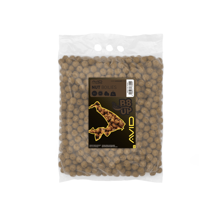 Boilies de la marca Avid Carp, gama B8-Up, sabor Nut, especial para la pesca de carpfishing.