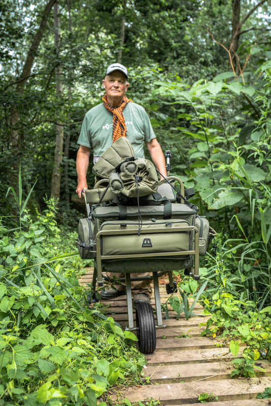 Carro de transporte de la marca Korum modelo Transition Compact, especial para la pesca de carpfishing.