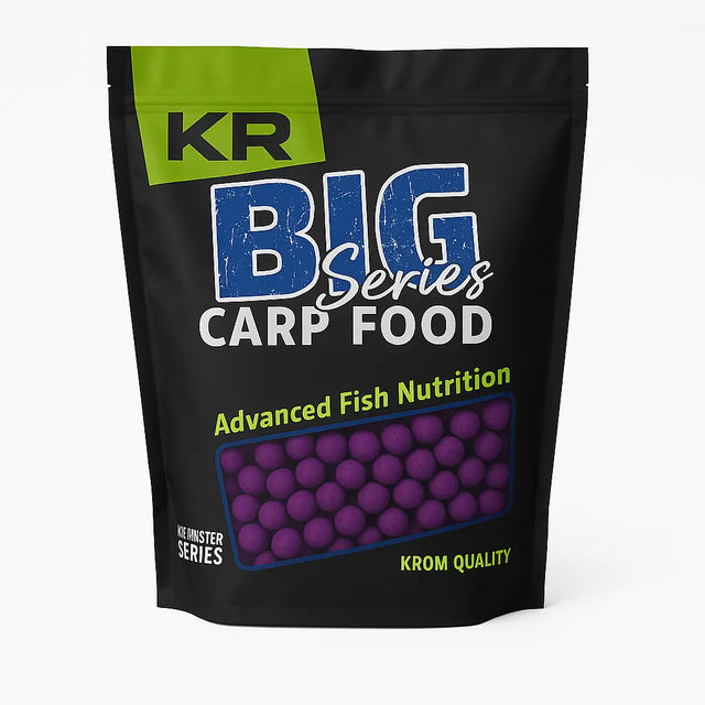 Bolsa de boilies solubles de la marca Krom Quality gama KR500, sabor Squid & Plum, de 16 milímetros, especial para la pesca de carpfishing.
