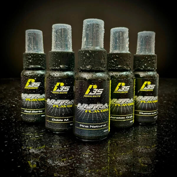 Aroma en formato spray de la marca Peralbaits gama Ultra Flavor con sabor a Frutos Secos, especial para la pesca de carpfishing.