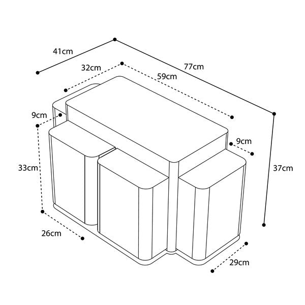 - 6 refuerzos internos rígidos que sujetan la superficie de trabajo/mesa y mantienen la forma