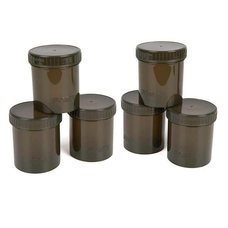 Pack de 6 botes para cebos de la marca Fox ,modelo Edges, diseñados para el almacenamiento seguro de todos los cebos de anzuelo, especial para la pesca de carpfishing.