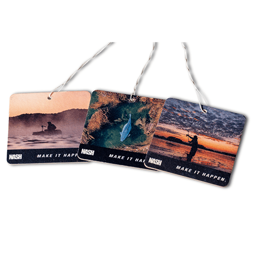 Ambientador para coche de la marca Nash modelo Make It Happen gráfica Find con aroma refrescante a bosque lluvioso, especial para la pesca de carpfishing.