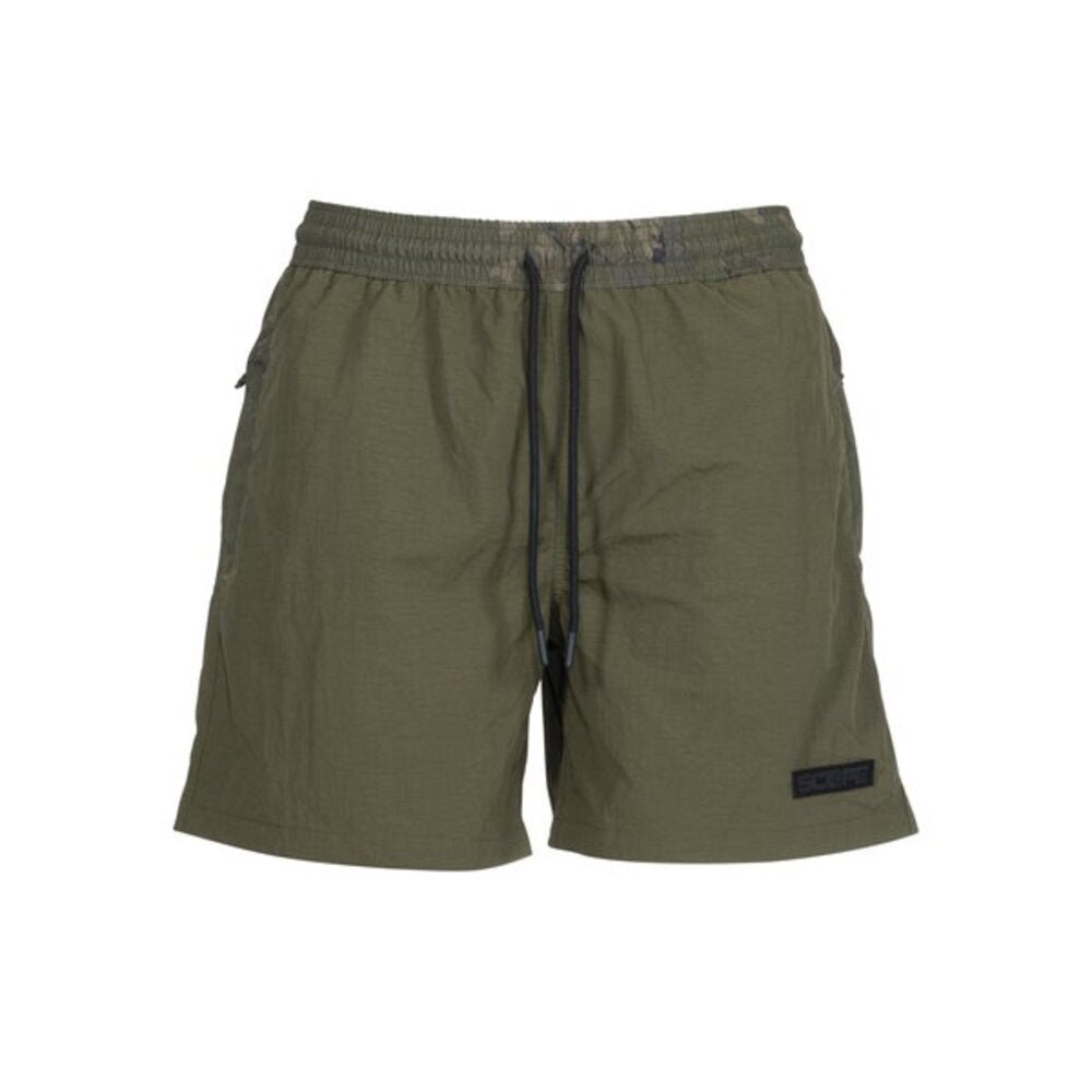 Bañador de la marca Nash modelo Scope Ops Short en color khaki/camuflaje, especial para la pesca de carpfishing.