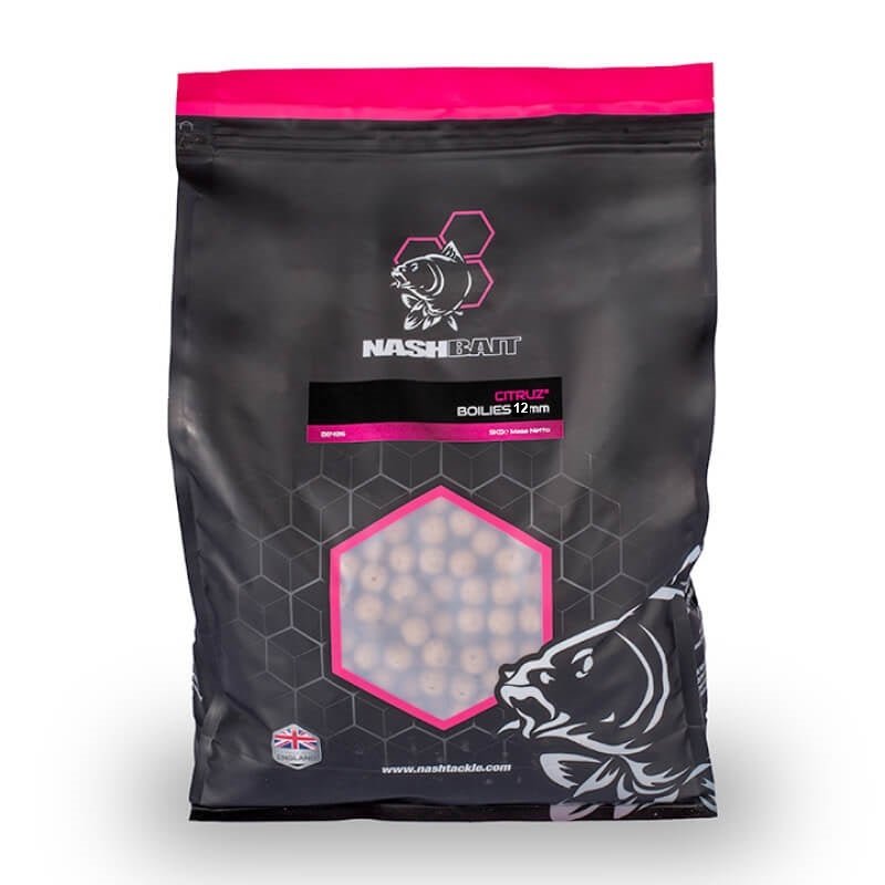 Bolsa de 1 kilo de boilies de la marca Nash sabor Citruz en color natural de 12 milímetros en forma de cebo alimentario para las cuatro estaciones del año, especial para la pesca de carpfishing.
