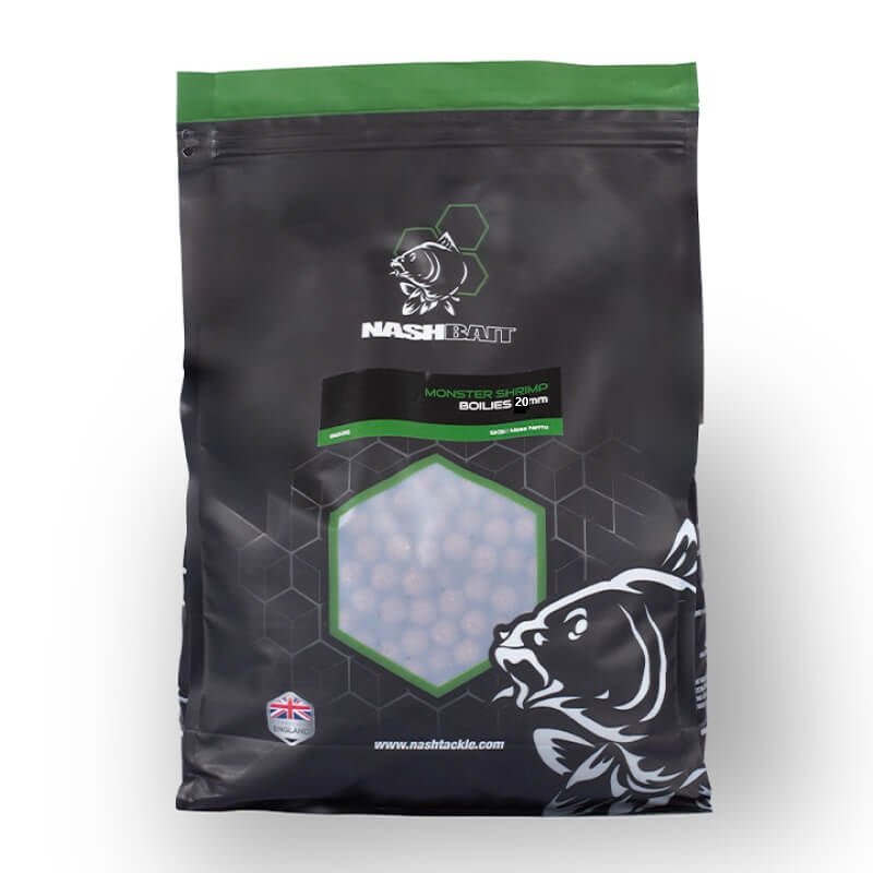 Bolsa de boilies de la marca Nash de 20 milímetros de primera calidad gama Monster Shrimp. Especial para la pesca de carpfishing.