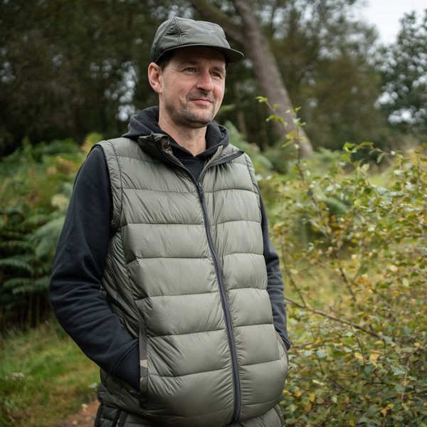 Chaqueta térmica impermeable de la marca Nash modelo ZT Air Cell 3 en 1 con diseño en color verde, especial para la pesca de carpfishing.