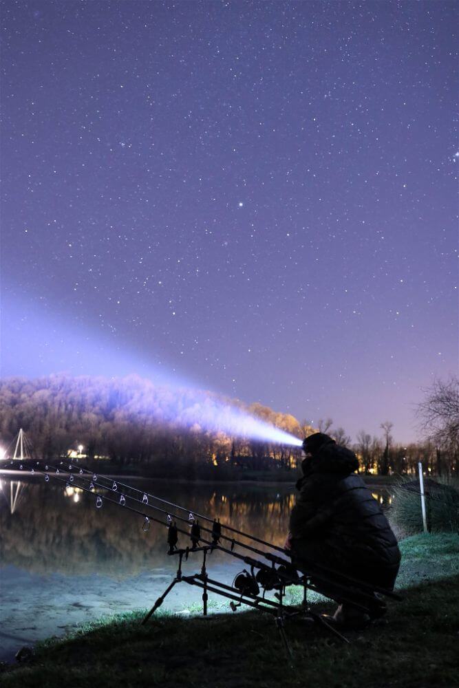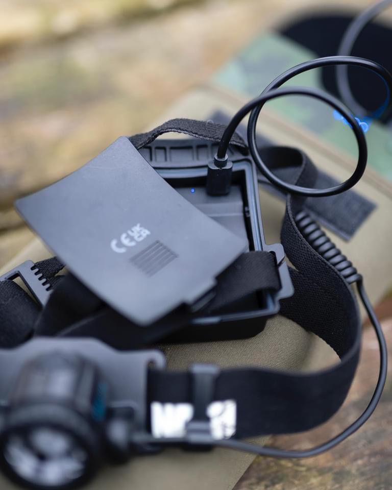 Linterna de cabeza ajustable de la marca Nash modelo Mega Lite que cuenta con 760 lúmenes, ideal para las sesiones nocturnas de pesca. Diseño con perfil plano que permite transportarlo cómodamente.