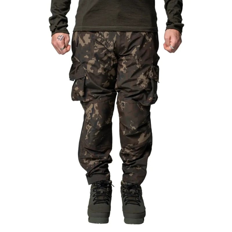 Pantalón impermeable de la marca Nash modelo ZT Helluva con diseño camuflaje en color camo, especial para la pesca de carpfishing.
