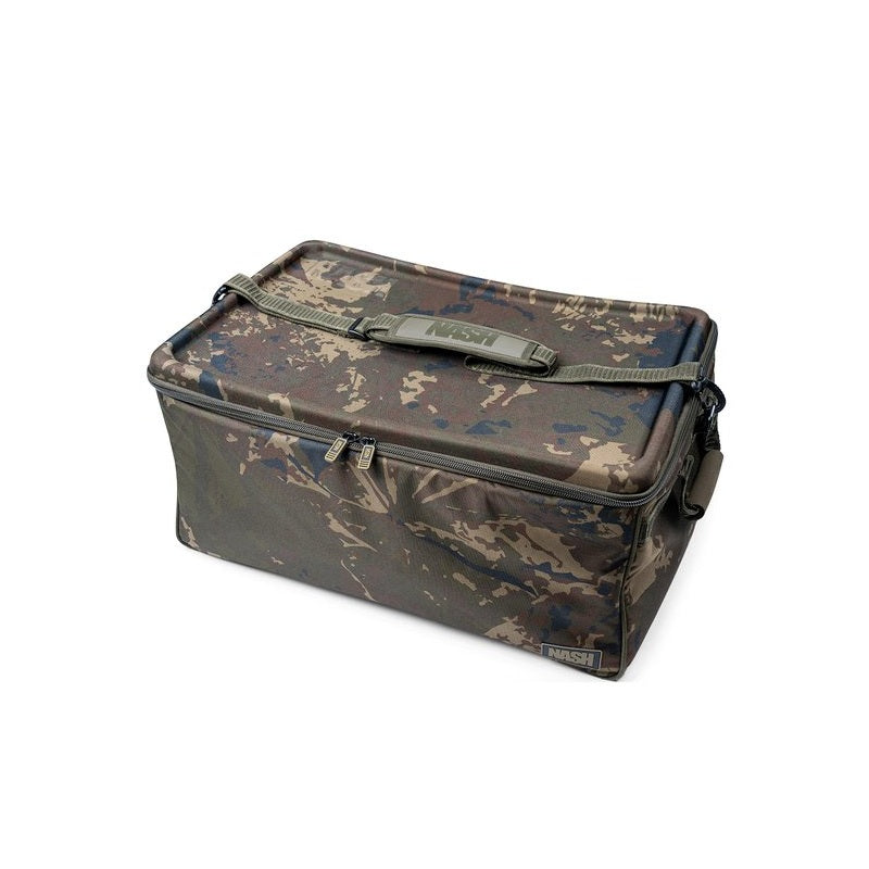 Macuto nevera de la marca Nash modelo Subterfuge con diseño camuflaje en color verde y tamaño grande con capacidad para 70 litros, diseñado para mantener las bebidas y alimentos frescos, especial para la pesca de carpfishing.