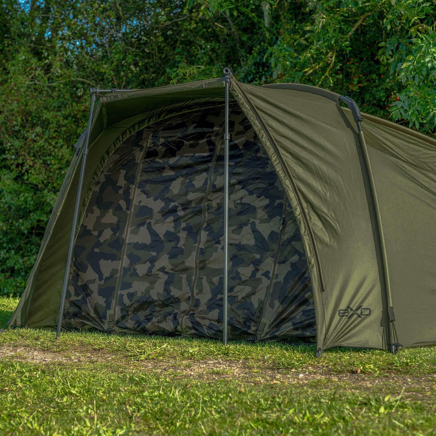Refugio de la marca Avid Carp, modelo Exo, en color kaki, especial para la pesca de carpfishing.