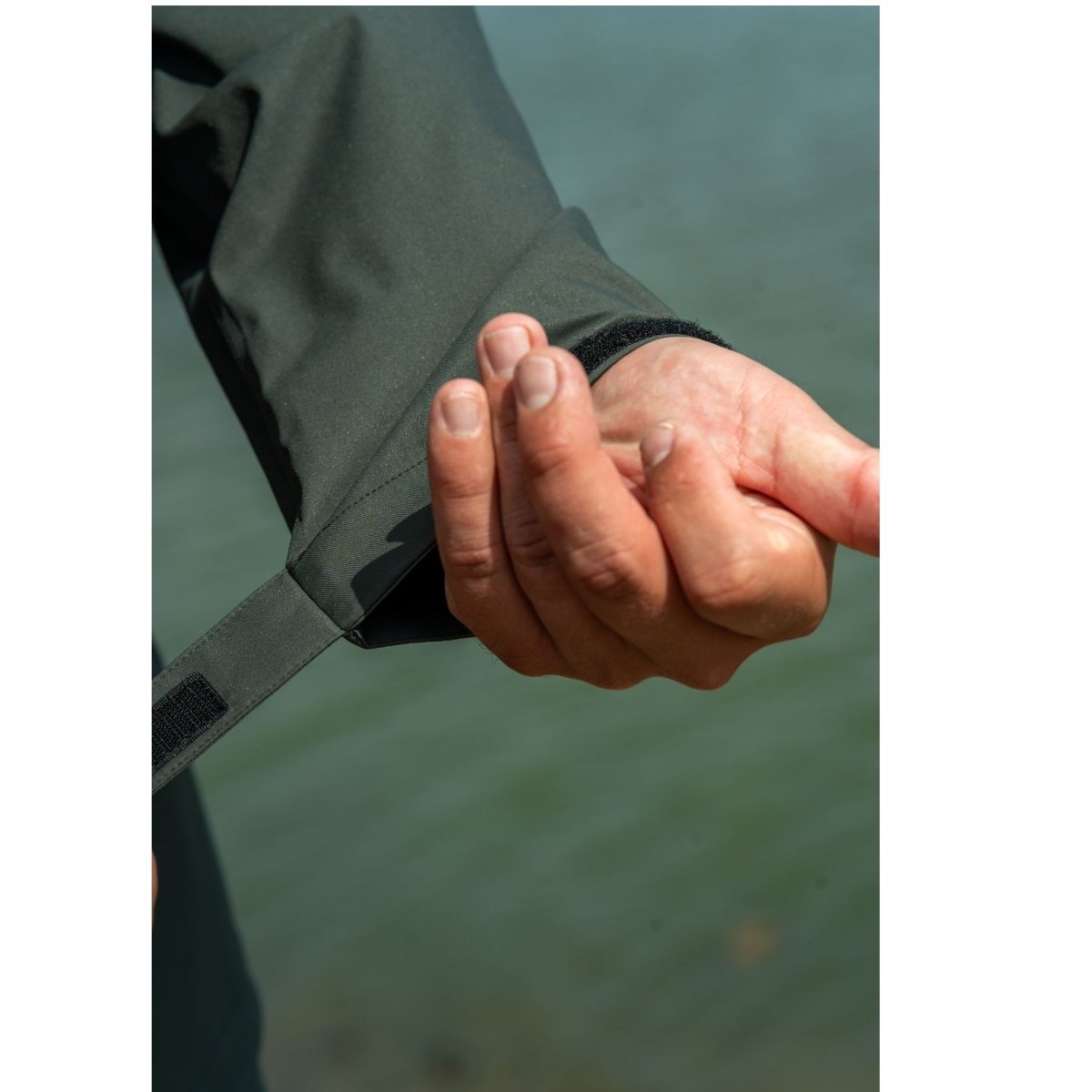 - Las mangas tienen puños con cierre de velcro en ángulo, para escurrir el agua y mantenernos secos