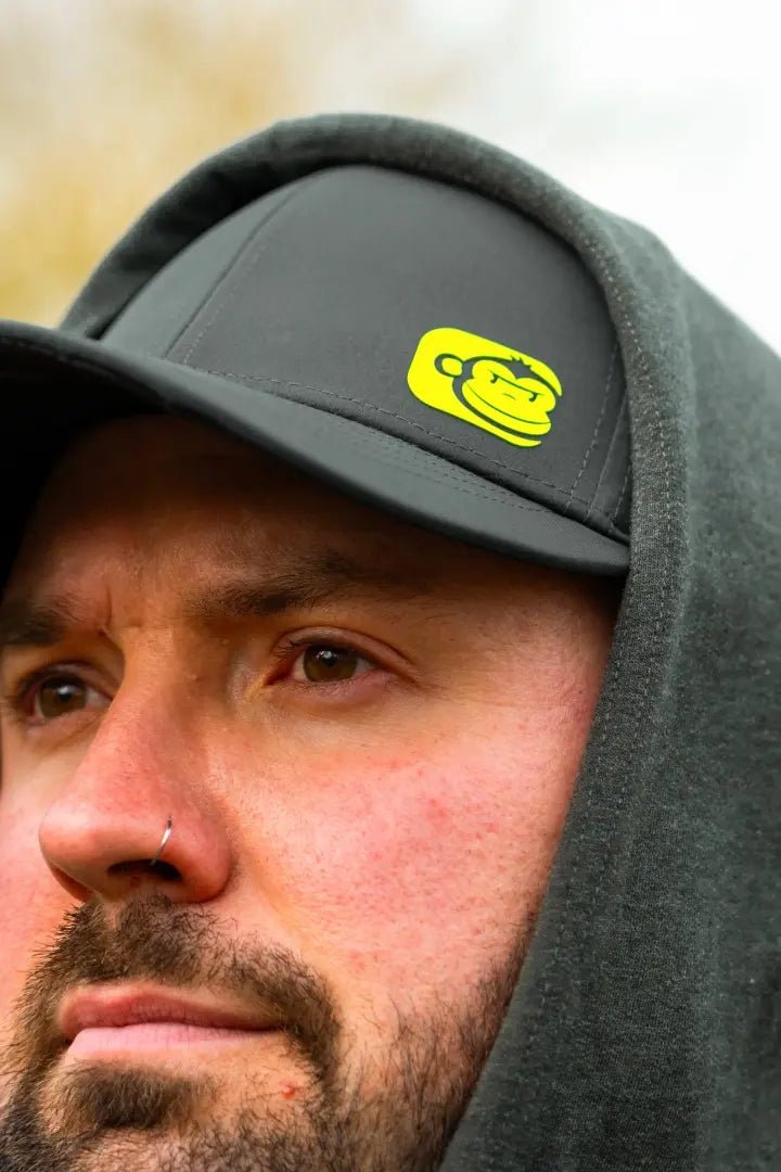 Gorra de béisbol clásica de la marca Ridge Monkey modelo Apearel SportFlex en diseño color gris oscuro con logo amarillo en la parte delantera.