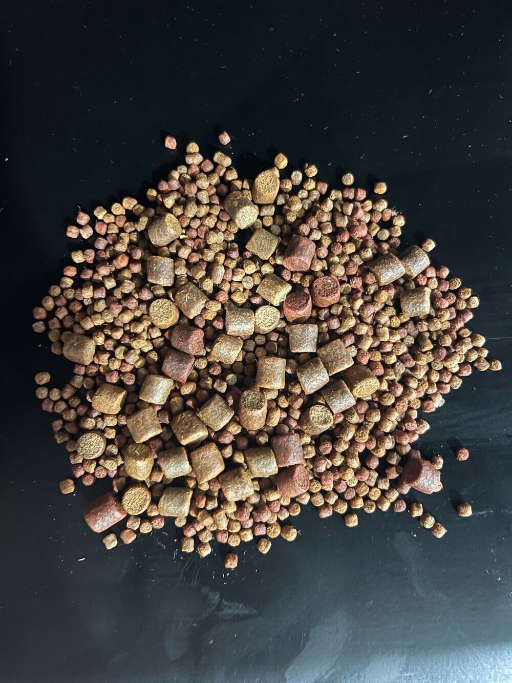 Bolsa de mix de pellets de 800 gramos de la marca TC Baits de 3 y 7 milímetros, ideal para la pesca de carpfishing.