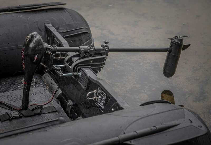 Barca compacta de la marca Raptor modelo 200 X-Treme con suelo de aluminio en color negro carbón, especial para la pesca de carpfishing.