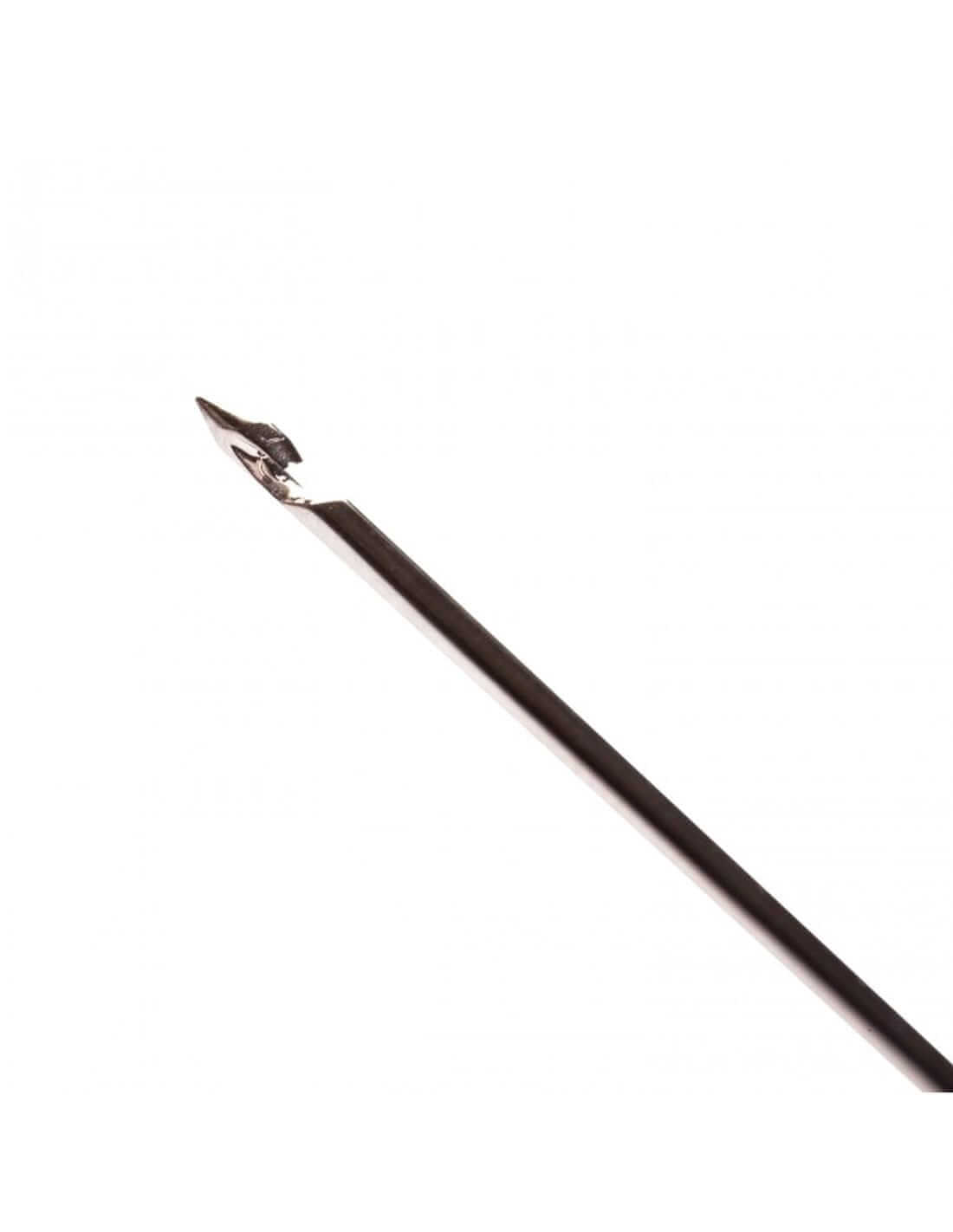 Aguja de la marca Ridge Monkey con mango de goma en color rosa fluorescente con tecnología Nite Glo para que la podamos ver en la oscuridad. Se trata de una aguja fuerte de alambre fino con lengüeta de seguridad de bajo perfil. Es ideal para cebos pequeños y blandos.