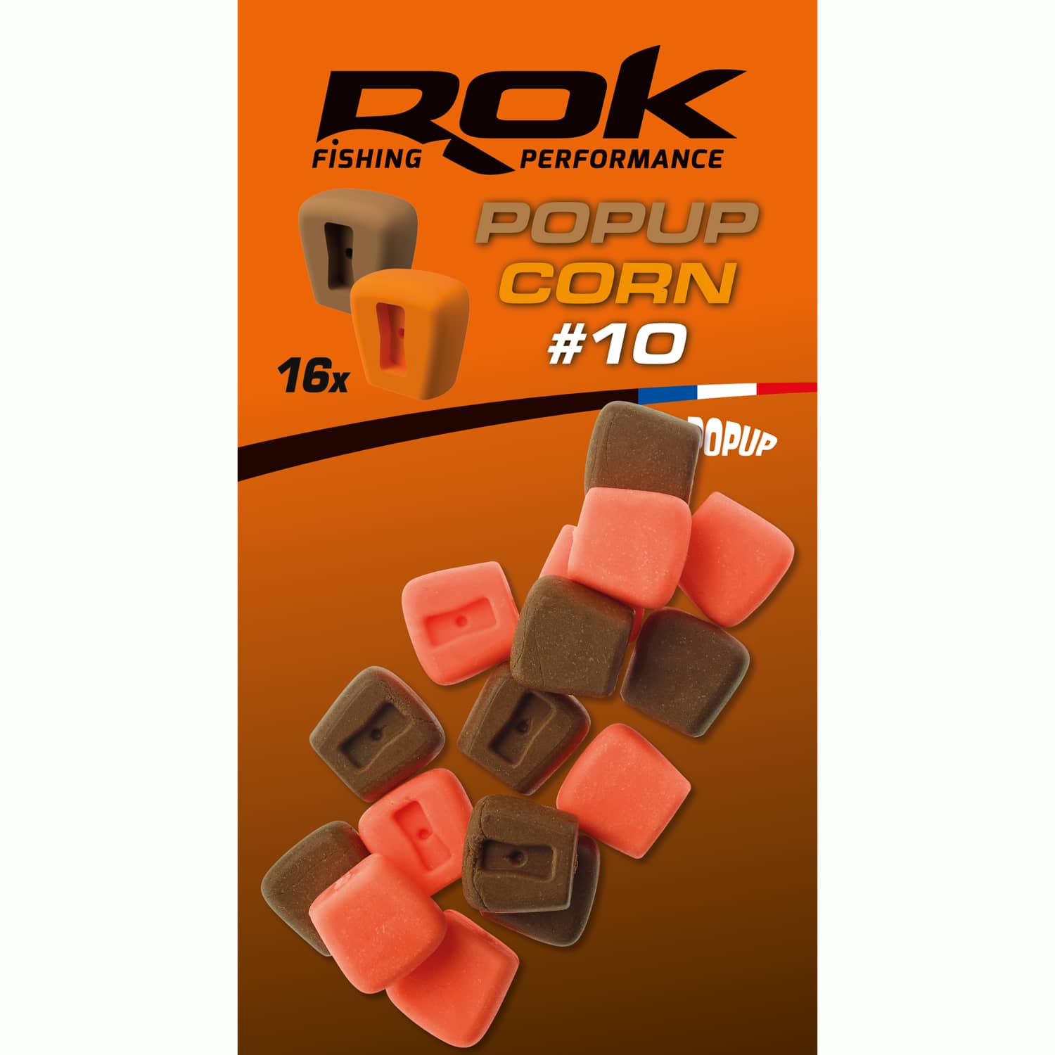 Maíz Pop ups artificial de la marca Rok Fishing de tamaño 10 en color naranja y marrón, especial para la pesca de carpfishing.