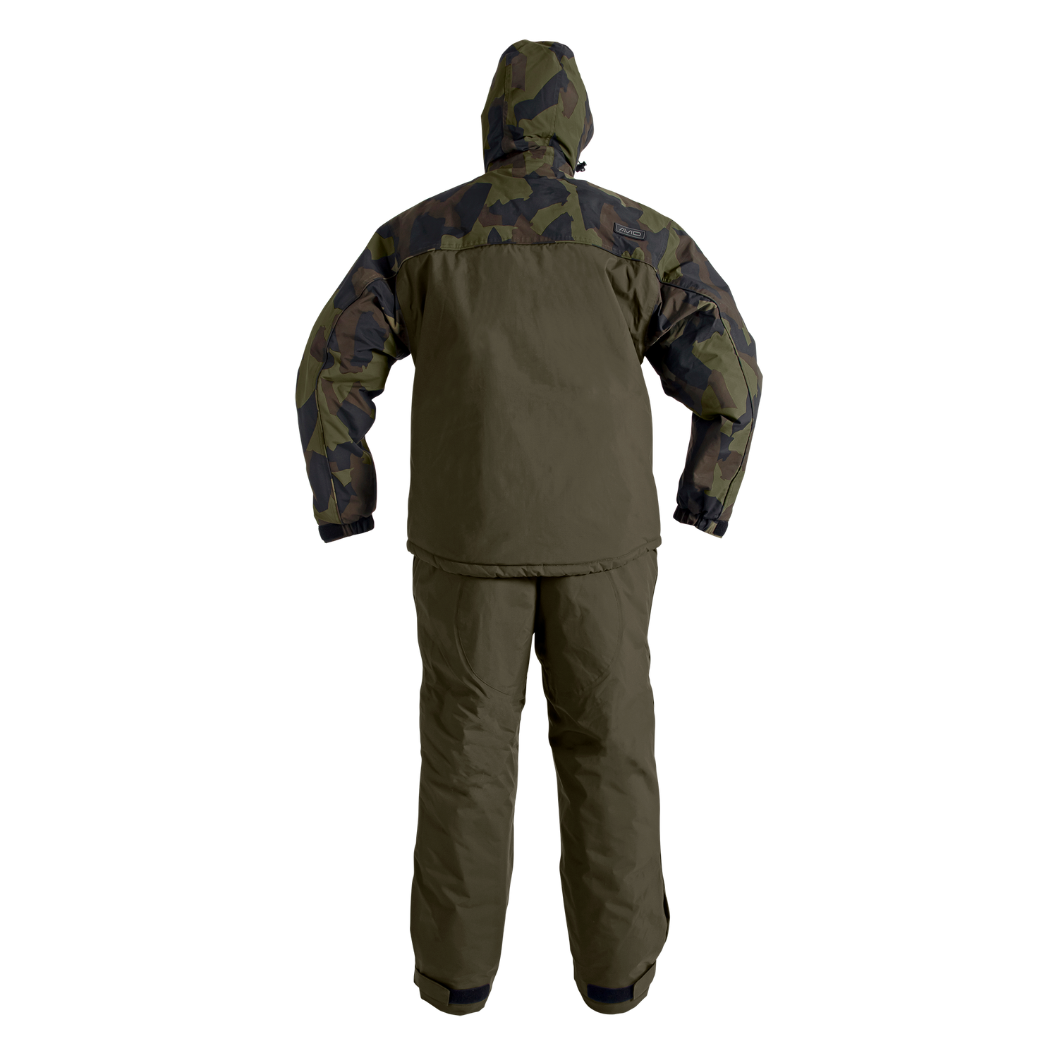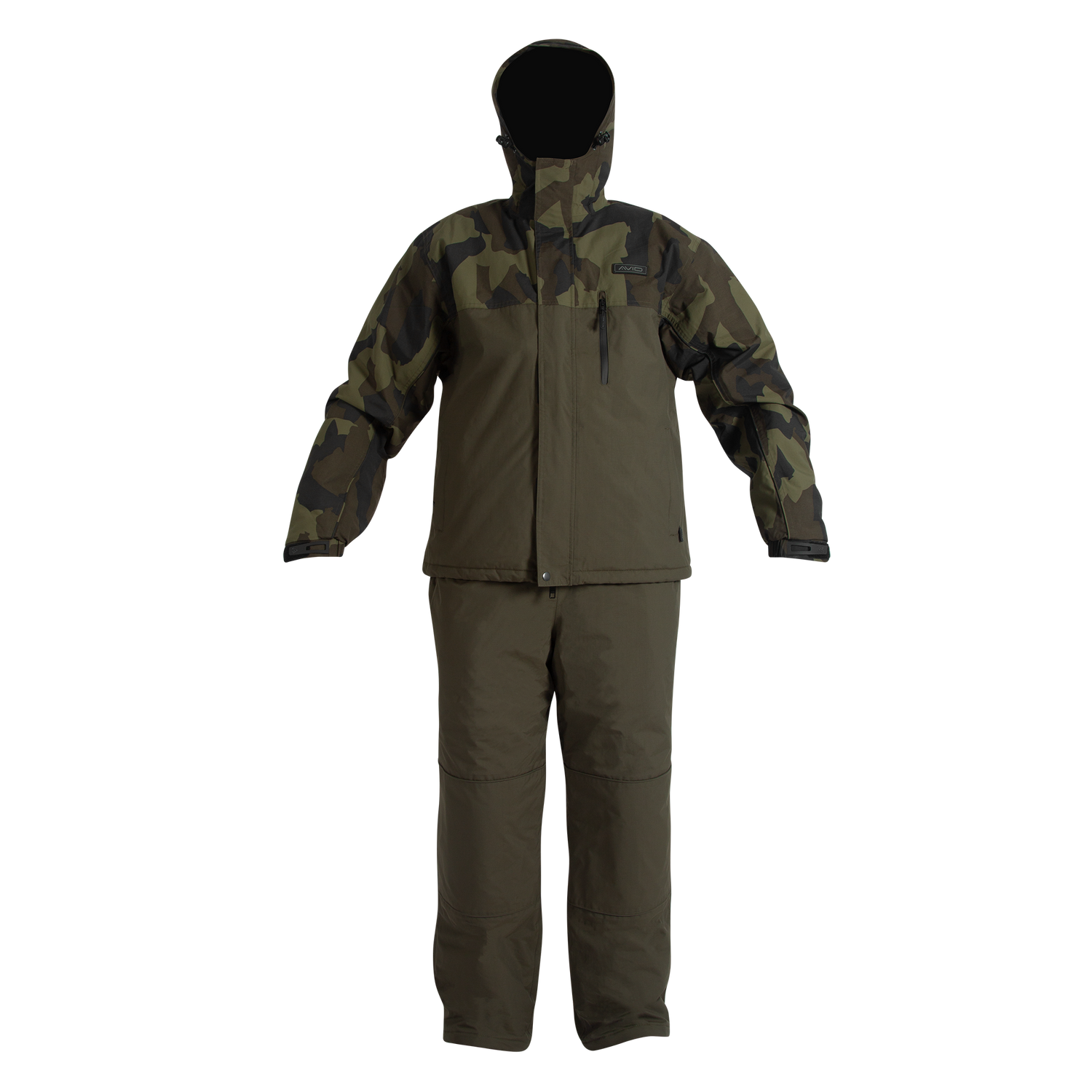 Traje térmico impermeable de la marca Avid Carp modelo Arctic-Series de 2 piezas con diseño en color verde militar, ideal para tus sesiones de carpfishing.