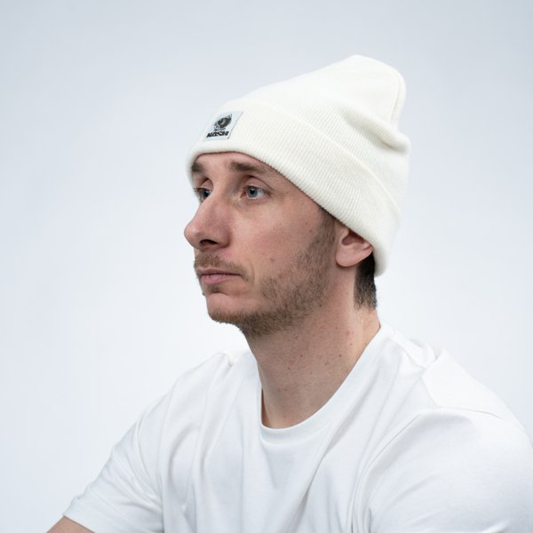 Gorro de invierno de la marca Nash, modelo Make It Happen, en color crema con logo de Nash, especial para la pesca de carpfishing.