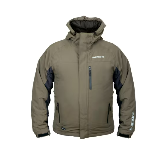 Chaqueta impermeable de la marca Shimano, en color verde, perfecta para tus sesiones de carpfishing.
