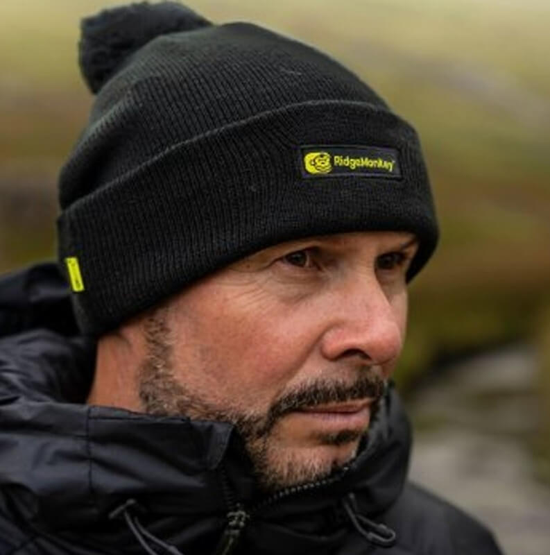 Gorro con bola para invierno de gran calidad de la marca Ridge Monkey en color negro, especial para la pesca de carpfishing.