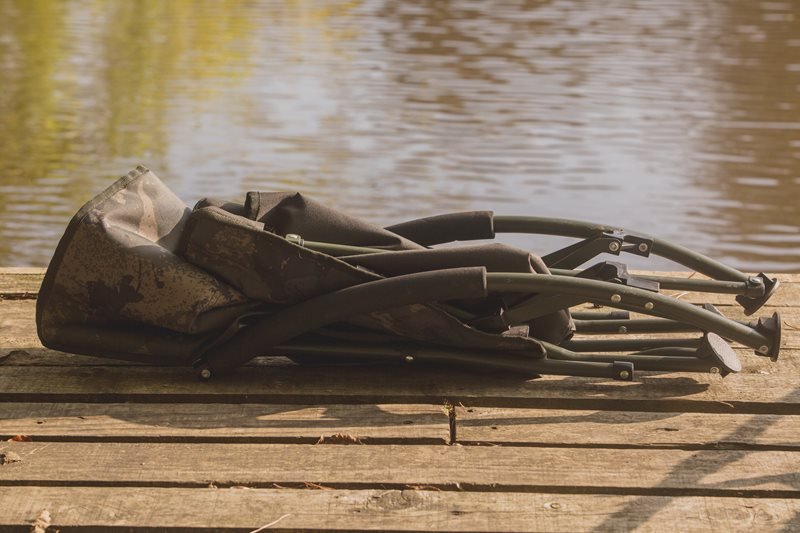 Silla de la marca Solar, modelo Undercover, en color camo, perfecta para la modalidad de pesca carpfishing.