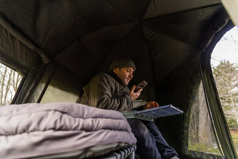 Refugio de la marca Fox, modelo Frontier X+, especial para la pesca de carpfishing.
