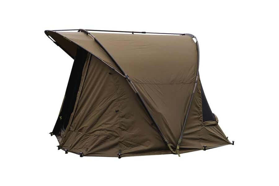 Refugio de la marca Fox, modelo Voyager en color caqui, especial para la pesca de carpfishing.