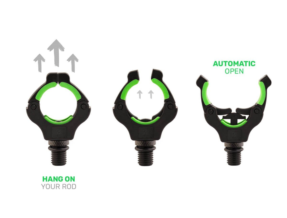 Soporte para sujetar la caña de la marca Zfish modelo Magsafe en color negro y verde, especial para la pesca de carpfishing.