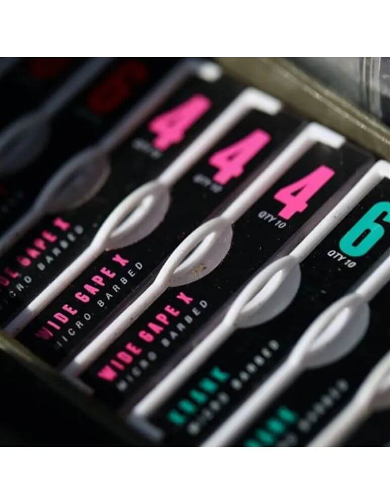 Anzuelos de la marca Korda de la gama Kamakura Wide Gape X, especial para la pesca de carpfishing. Este tipo de anzuelo se caracteriza por su alambre de mayor calibre y con punta muy afilada y con protección de cera. Disponible en los números 4, 6 y 8.