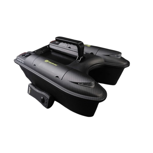 Barco cebador de la marca Ridge Monkey, modelo Hunter 750, con sonda, en color negro, especial para la pesca de carpfishing.