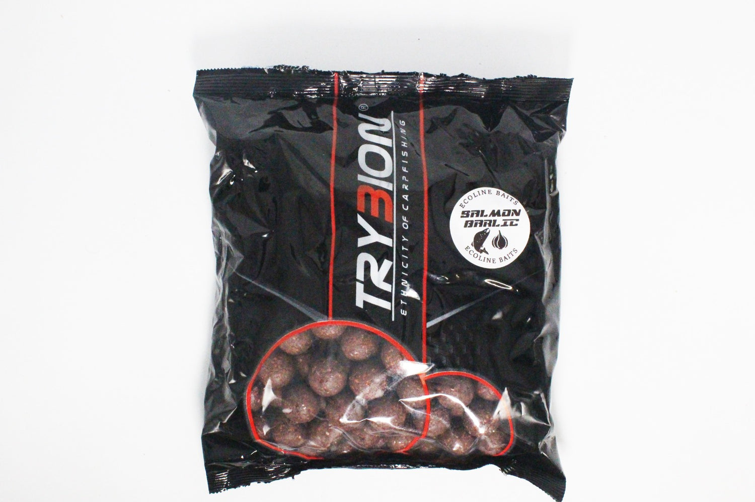 Bolsa de boilies de la marca Trybion gama EcoLine sabor Salmon Garlic, especial para la pesca de carpfishing.