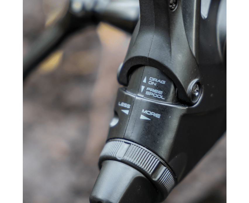 - Sistema de freno delantero rápido combinado con freno trasero de bobina libre controlado y dos clips que no dañan la línea