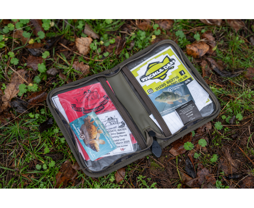 Cartera de la marca Avid Carp modelo RVS en color caqui, para guardar tu licencia de pesca. Es ideal para guardar y mantener seguros todos tus documentos y tu dinero.